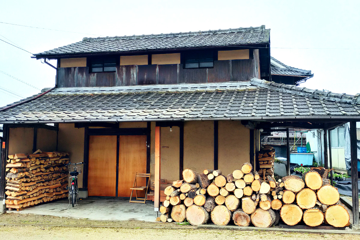 味のある昔ながらの納屋が、風景に馴染んで心地良い。掃除が行き届き、薪や薪割り前の玉切りの木が綺麗に並んでいた。