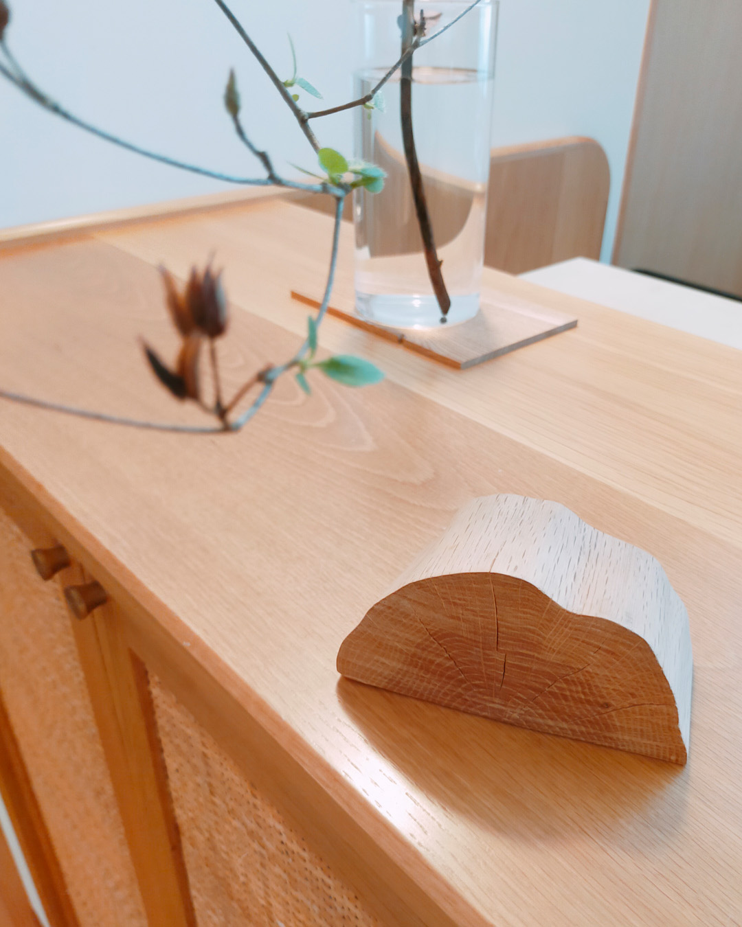 自然にある形を活かしたペーパーウェイトだ。シンプルな美しさが、家に馴染んでいる。