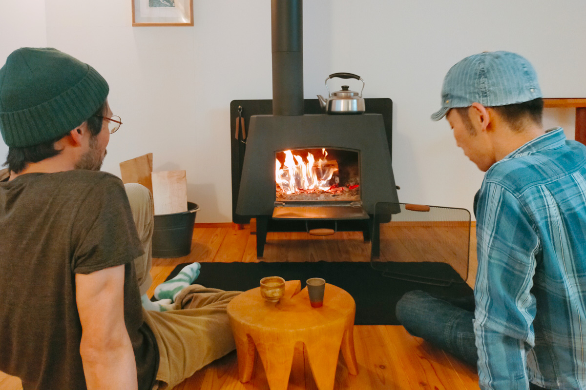 取材を通じて見えてきたのは、受け継いだお祖母ちゃんの納屋を大切に使い、薪ストーブを通じて地域の方達と助け合いの交流が生まれ、冬が来るまでは物作りを楽しむ暮らし。}薪ストーブという枠を超え、住まい、地域によって育まれていく古くて新しいライフスタイルだった。