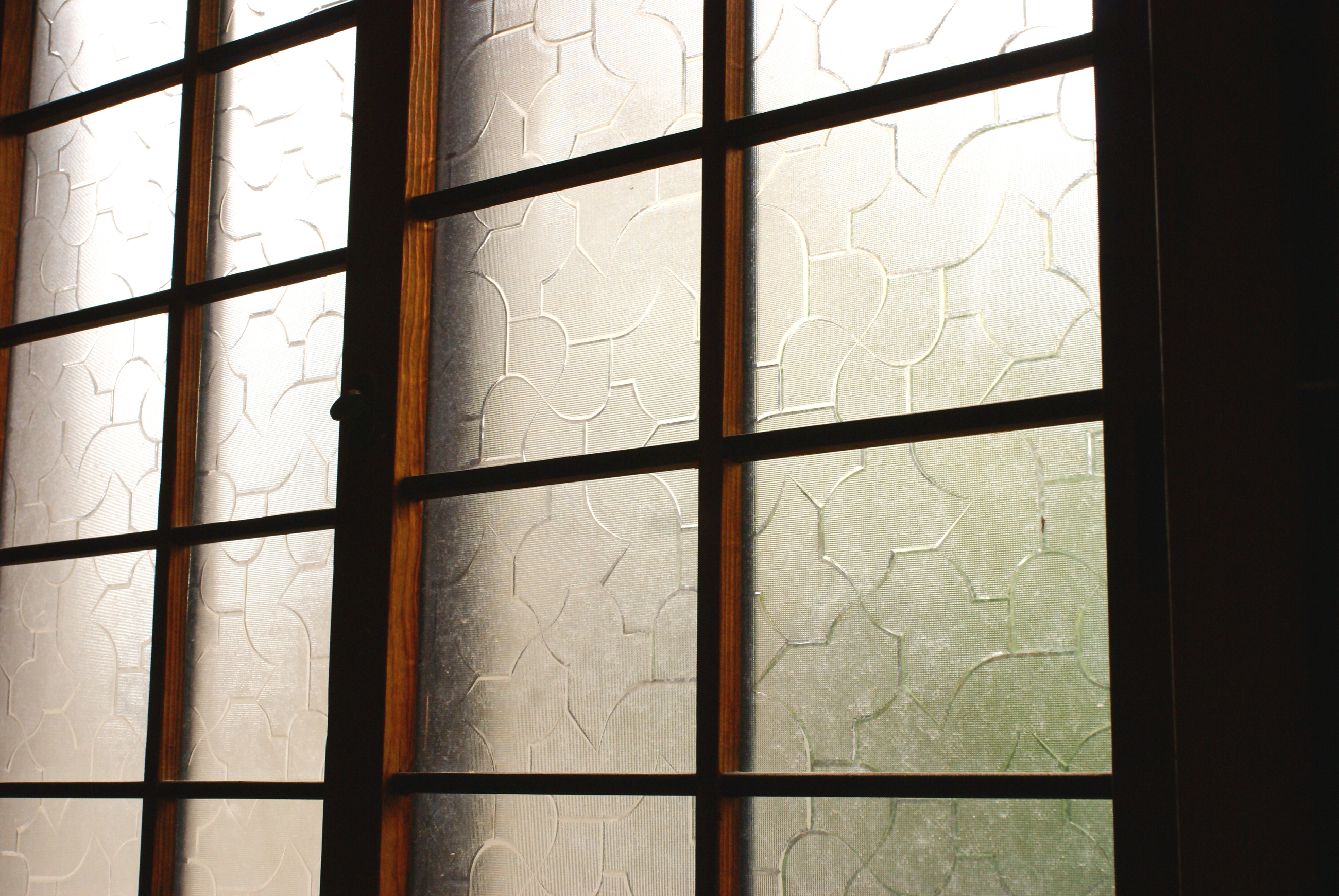 玄関は昭和の型板ガラスからやわらかな光が差し込む