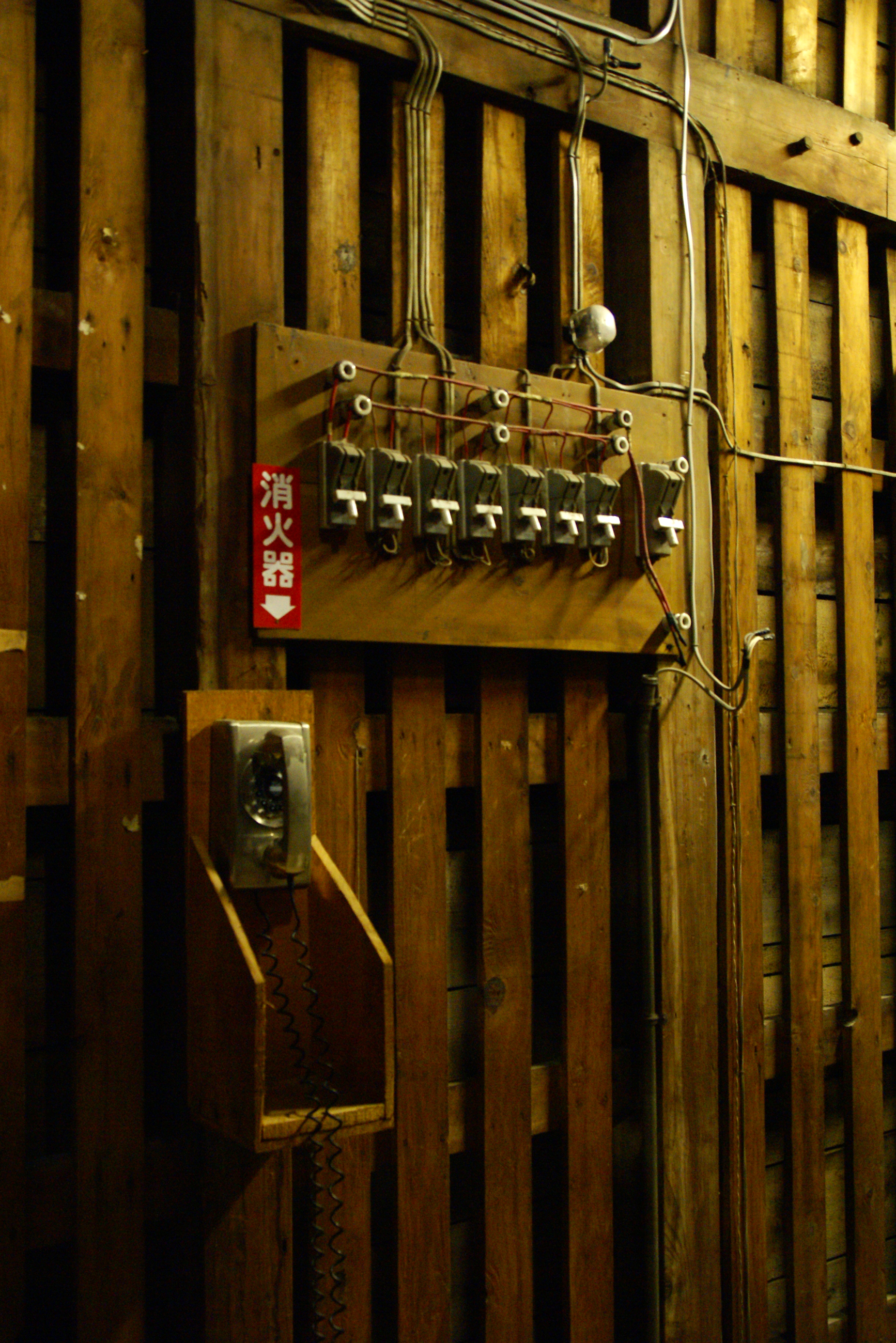 屋根の木組みは、船の底の組み方のよう。照明が最低限しかなく、空間にマッチしている。