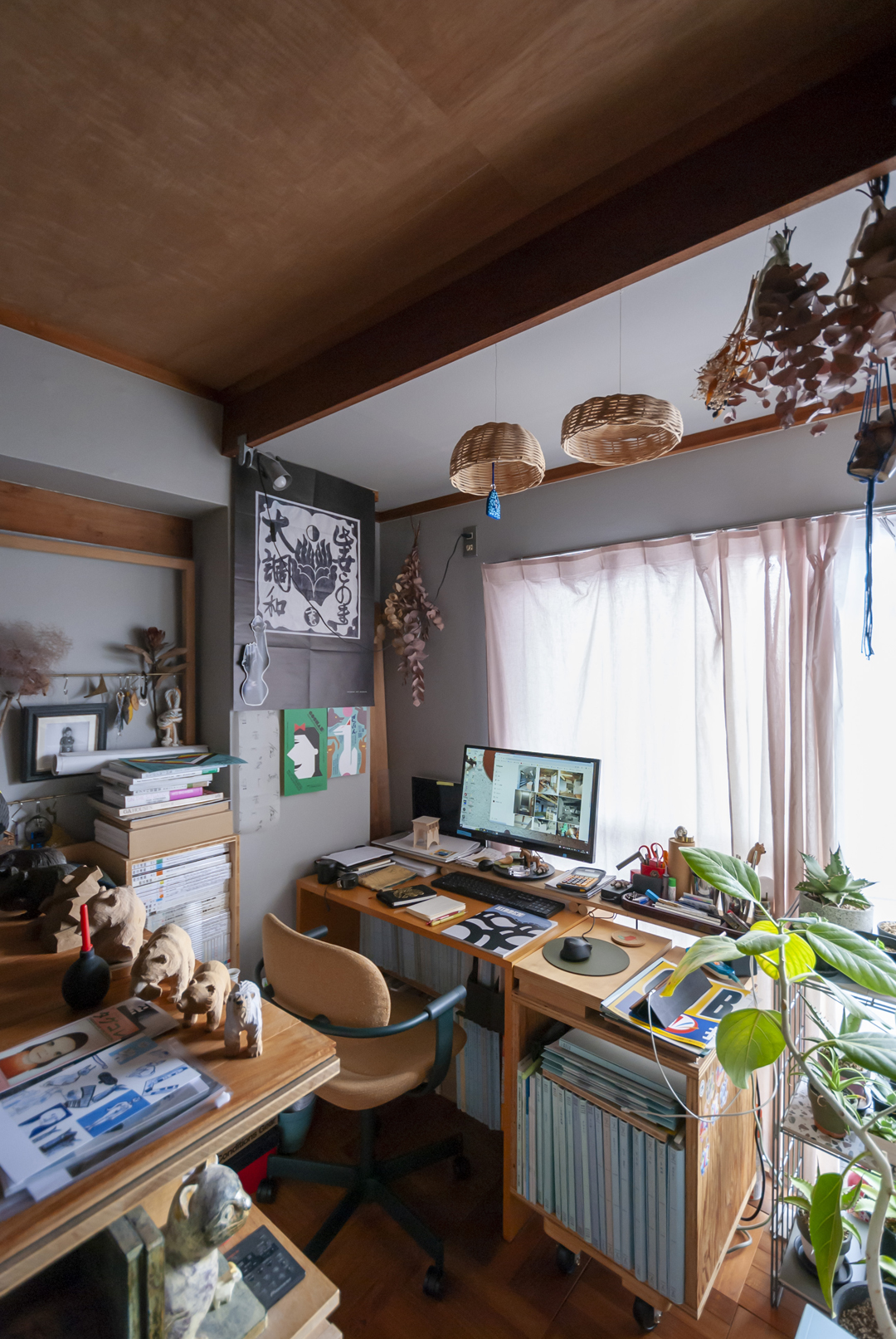 率直に疑問を投げかけてみると、「生活と仕事の区別があんまりないっていうか、意識していないです。寝る直前まで仕事をしている日もあるし、平日でもゆっくりしている時もあります。ここで仕事をやめ!というふうにはできなくて、絶対何か考えちゃうんです。外を歩いていても、あ、これいいな。って考えるし。区切る必要がないからこういう空間になっているのかな。自分には合っていると思います」と、その暮らしのスタイルがお部屋づくりにも滲みでているのだろうな、と、すんなり腹に落ちてくる納得感ある答えだった。