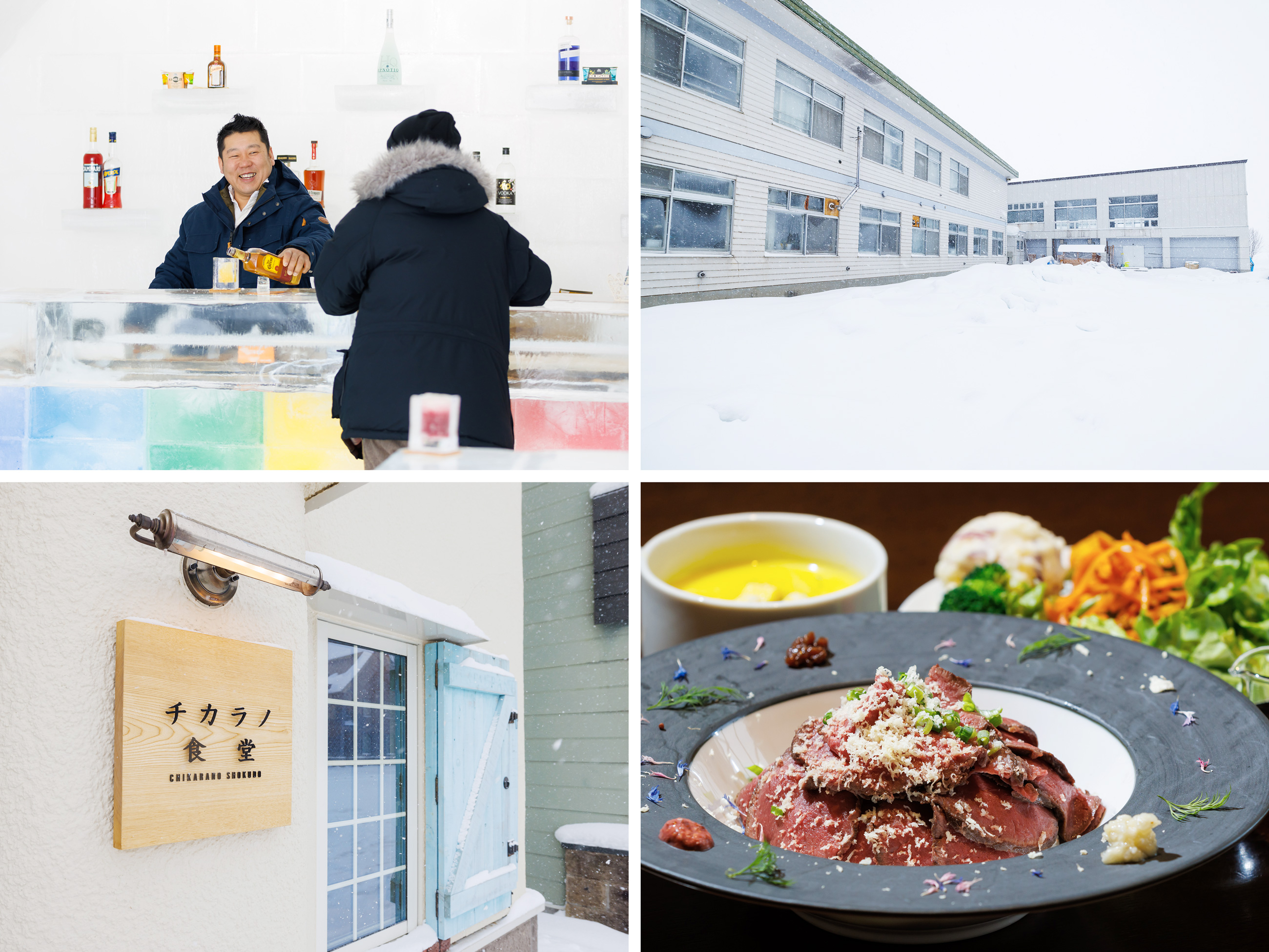 校庭を使った冬期限定のアイスバーやアイスドーム、野外サウナはまちおこしの一環。「びえいの冬まつり in チカラノ」を開催し、地域に人を呼び込んでいる