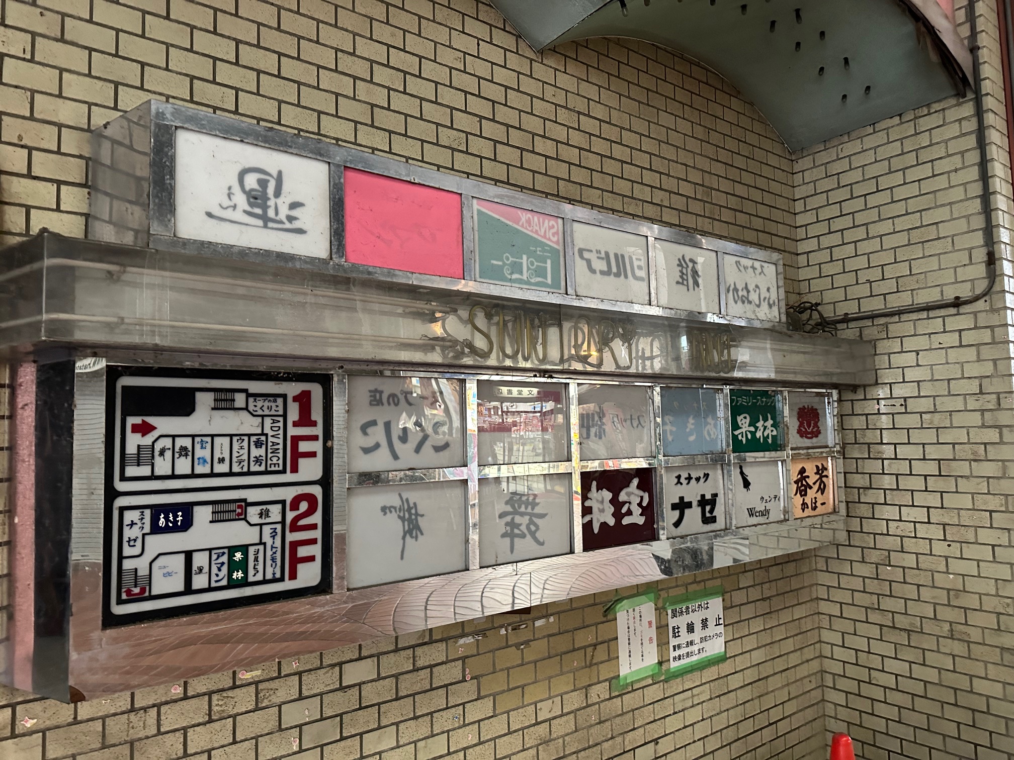 集合看板を横目に歩いていくと...大人の世界の入口のようでドキドキします。